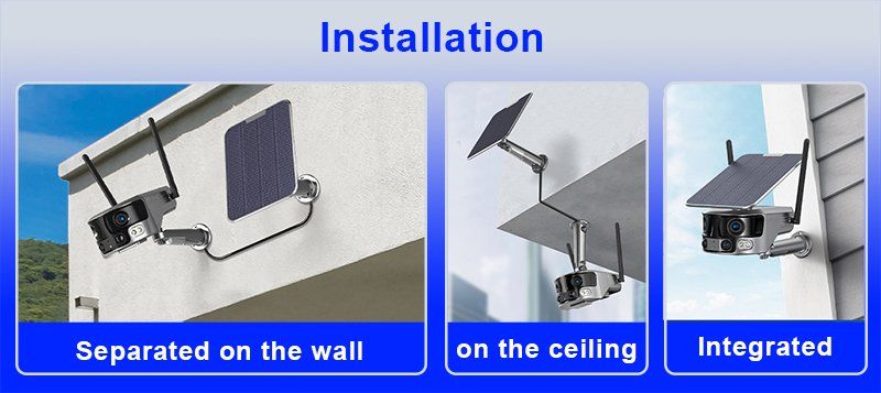 solarno napajanje – ločljivost 4K (4096*2160) – ultraširok kot 180° – sestavljena slika dveh objektivov – zaščita IP66 – senzor PIR – zaznavanje gibanja ljudi – nočni infrardeči in barvni vid na razdalji 20–40 m – povezava WIFI – upravljanje v pametni aplikaciji – dvosmerni domofon – možnost shranjevanja v oblaku ali na kartici TF