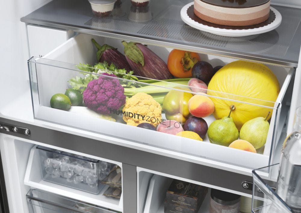 Predal Humidity Zone ohranja svežino vašega sadja in zelenjave dvakrat dlje*. To omogoča tehnologija HCS (Humidity Control System – sistem za nadzor vlage), membrana iz rastlinskih vlaken, ki lahko vzdržuje 90-odstotno vlago in samodejno uravnava pravilno vlažnost ter tako prepreči nastanek vodnih kapljic iz kondenza.
