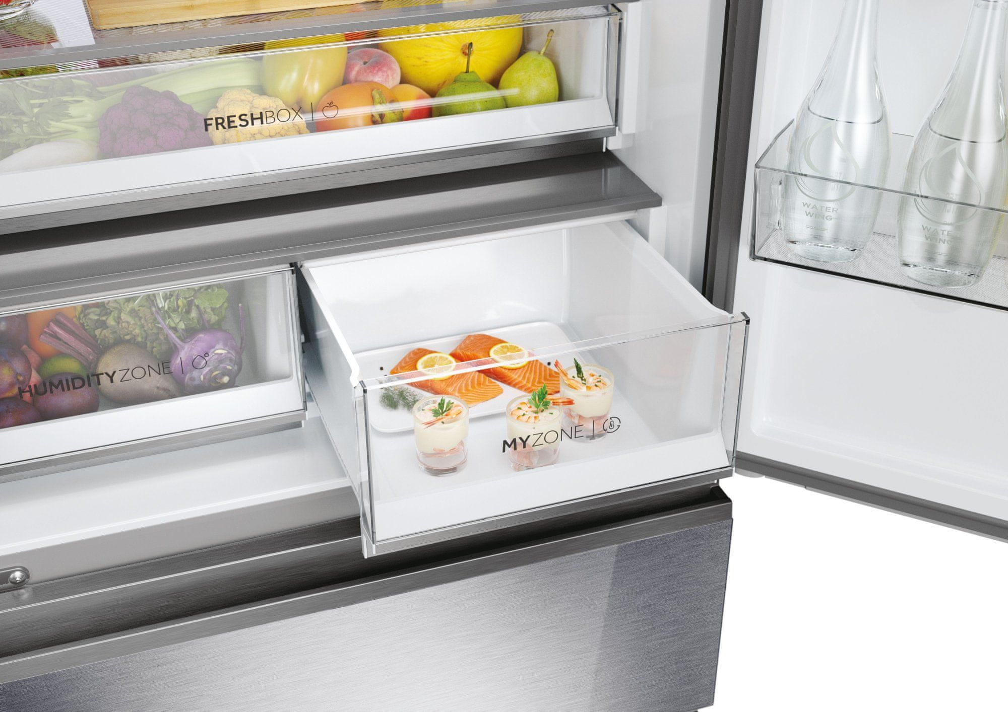 - Število predalov v hladilnem predelu: 1× predal Humidity Zone, 1× predal My Zone, 1× predal Fresh Box