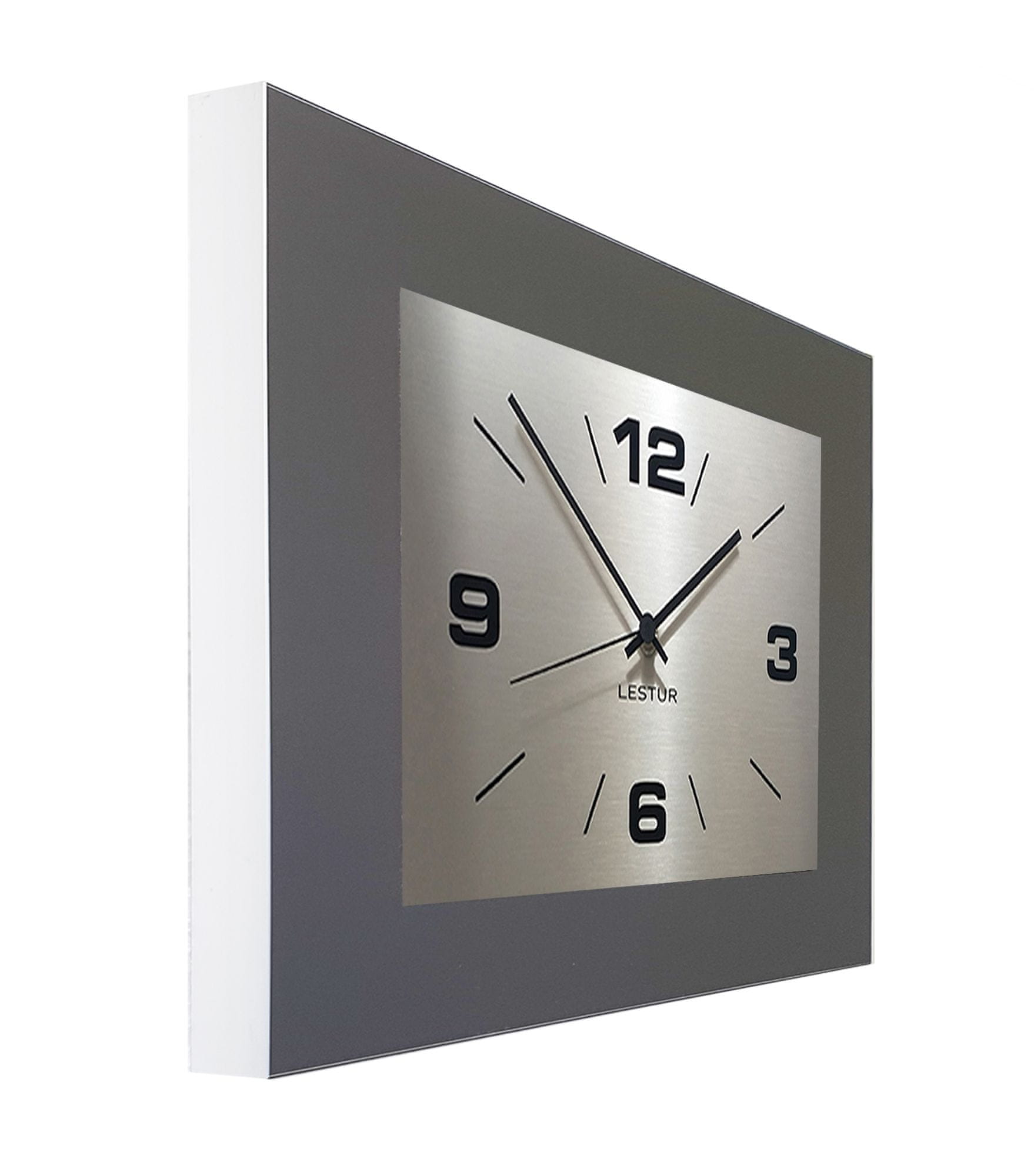 LESTUR Stenska ura Trendy - moderna stenska ura, lesena stenska ura, kombinacija les/inox, Slovenija, mat siva