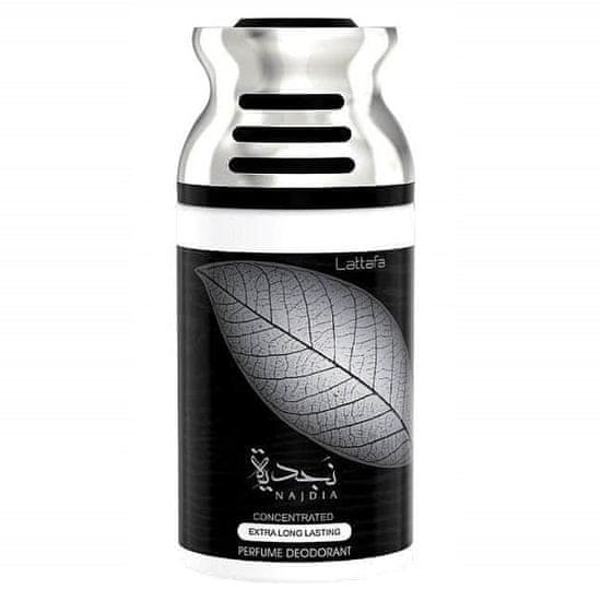 Lattafa Najdia je aromatično-vodna dišava za ženske in moške, ki se odpre z aromami citrusov v kombinaciji s pikantnostjo cimeta. Začutiti je tudi vodne note, vse pa se poveže v harmonično celoto in naredi pozitiven vtis.; Alcohol Denat, Ethyhexyl Glycerin, Citronellil, Hexyl Cinnamal, Phenylacetaldehyde.