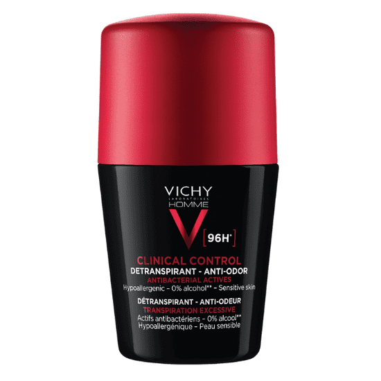Vichy Homme Clinical Control je inovativen antiperspirant za moške, ki zagotavlja neprimerljivo učinkovitost v boju proti prekomernemu potenju. Njegova napredna formula deluje 96 ur in zagotavlja dolgotrajen občutek svežine in udobja. Vichyjev antiperspirant, ustvarjen posebej za moške, ki se spopadajo s prekomernim potenjem, učinkovito zmanjšuje nastajanje znoja, hkrati pa neguje občutljivo kožo pod pazduhami.