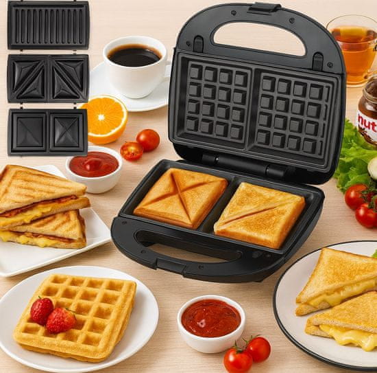Aparat je izdelan z mislijo na enostavno uporabo, varnost in vzdržljivost. S kakovostnimi nepriljepljivimi ploščami, indikatorji delovanja ter varnostnim hladnim ročajem nudi idealno kombinacijo udobja in varnosti. Ne glede na to, ali pripravljate klasičen toast, bogato obložene sendviče ali slastne vaflje, bo poskrbel za enakomerno zapečeno, zlato rjavo teksturo brez prijemanja.