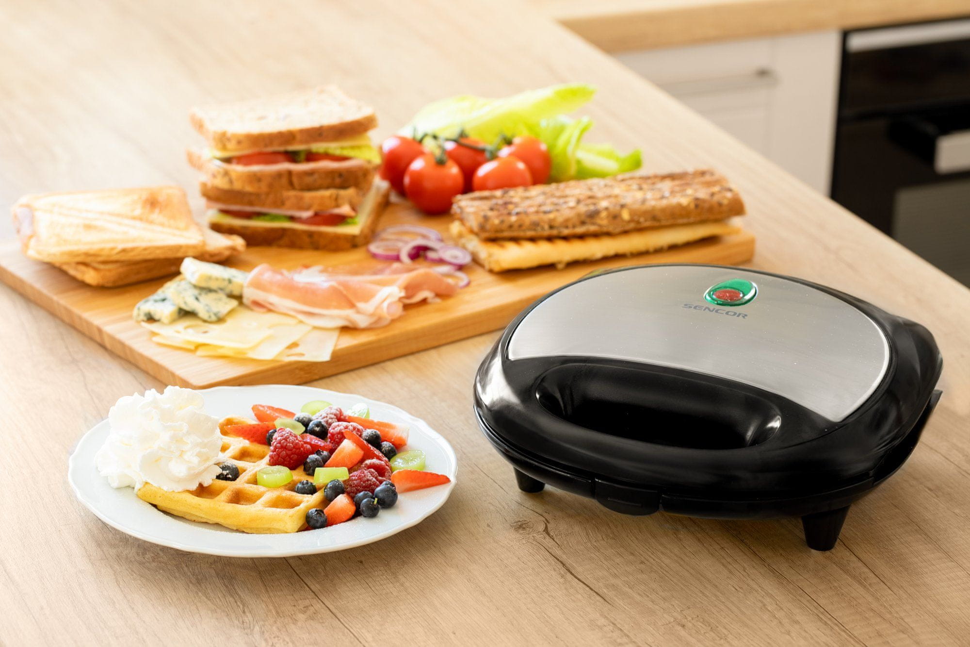 • 5 zamenljivih plošč za peko – trikotne, kvadratne in školjkaste plošče za sendviče, paninije in vaflje
