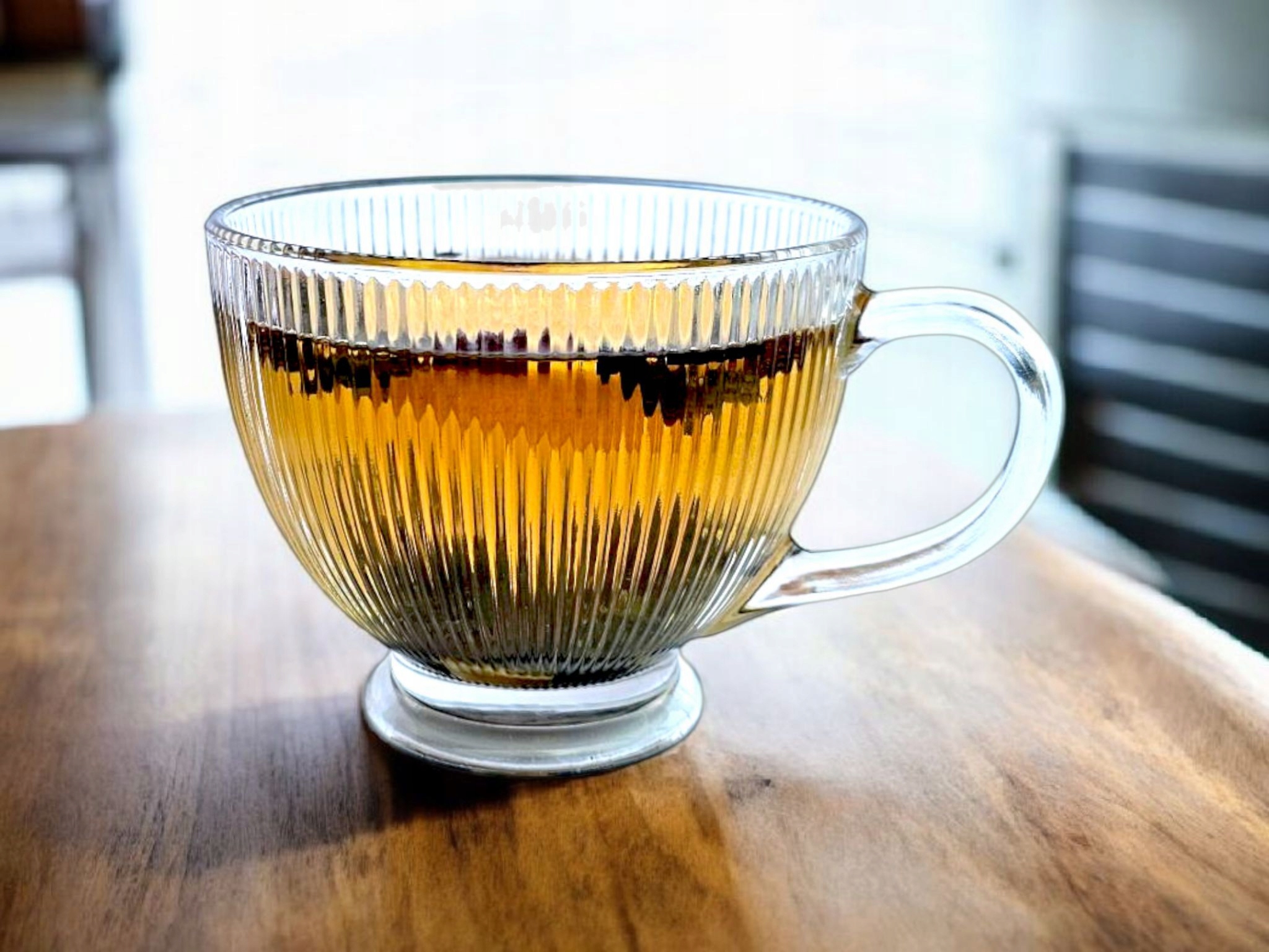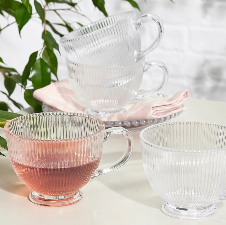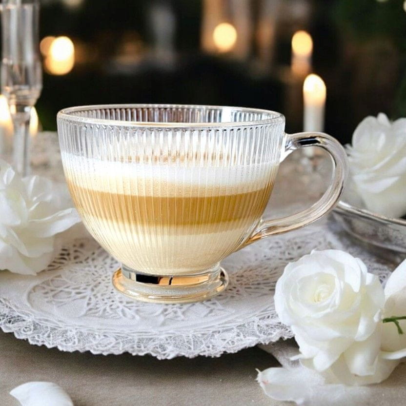 Elegantna oblika – prozorno steklo z okrasnimi utori doda skodelici edinstven čar in eleganco.