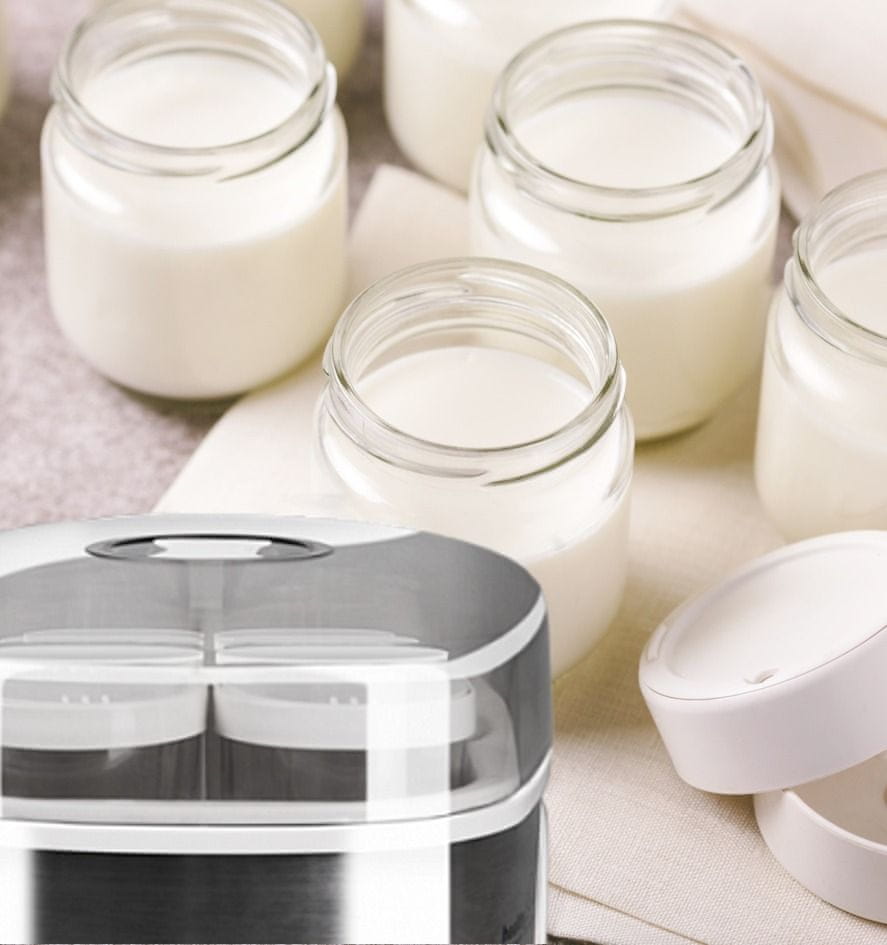 Jogurt je pripravljen v 8 steklenih posodicah in je pripravljen za uživanje v najkrajšem možnem času. Prozoren zgornji pokrov omogoča enostaven pregled nad pripravljenim izdelkom. Prostornina 1440 ml, 8 steklenih posodic, mogoče pomivati v pomivalnem stroju!