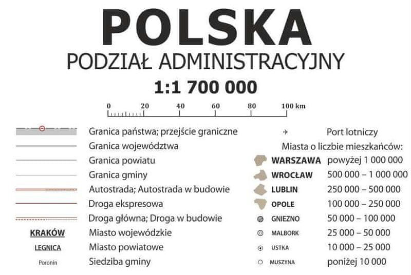 Poljska 1:1 700 000. Plastificirana, dvostranska osnova/priročnik za zemljevid. Fizično/administrativno. Izdaja 2026. Celoten opis