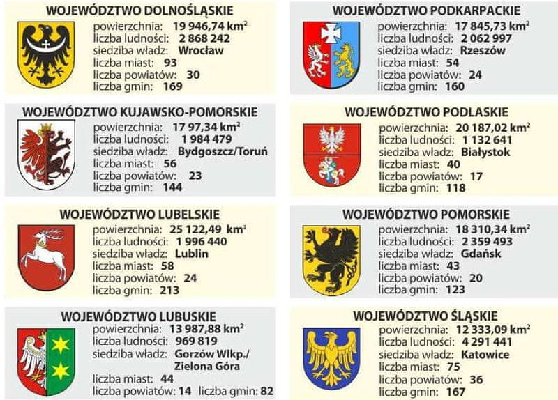 - osnovne številčne podatke in embleme posameznih vojvodstev.