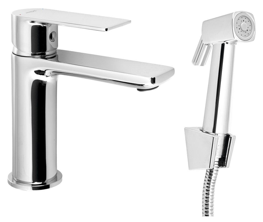 AQUALINE Kromirana samostoječa umivalniška pipa z bidetno prho - brezdotično upravljanje