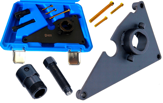 Specializiran komplet AMD TOOLS za zaklepanje verižnega zobnika in visokotlačne črpalke goriva pri Hyundai in Kia CRDi 1.1, 1.4, 1.5, 1.6, 1.7 diesel motorjih (2001–2016).