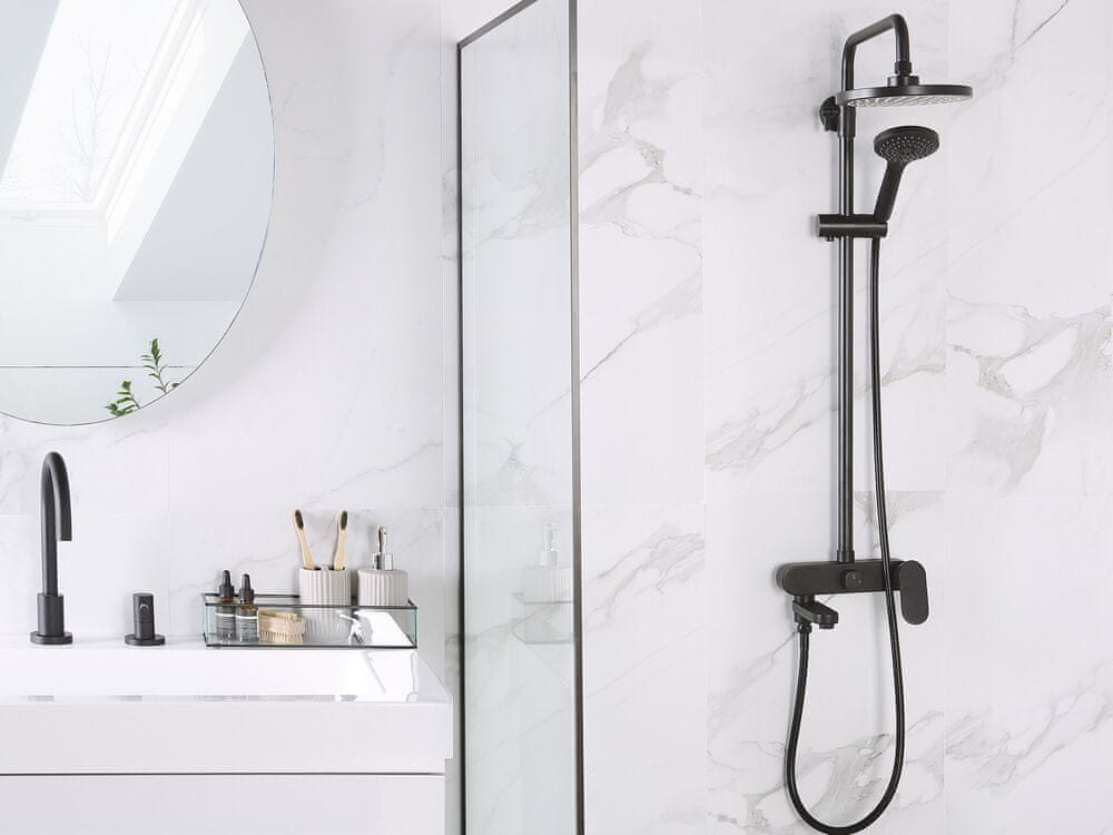 Stolp za prhanje je vsekakor odlična rešitev za vse, ki cenijo udobje pri uporabi. Izdelan je iz medenine z mat črnim zaključkom in se bo odlično podal v industrijske ali moderne interierje. Tuš glava in dežni tuš sta izdelana iz sintetičnega materiala, zato sta lahka, a vzdržljiva. Z enim samim vzvodom lahko preprosto nastavite temperaturo in tlak vode.