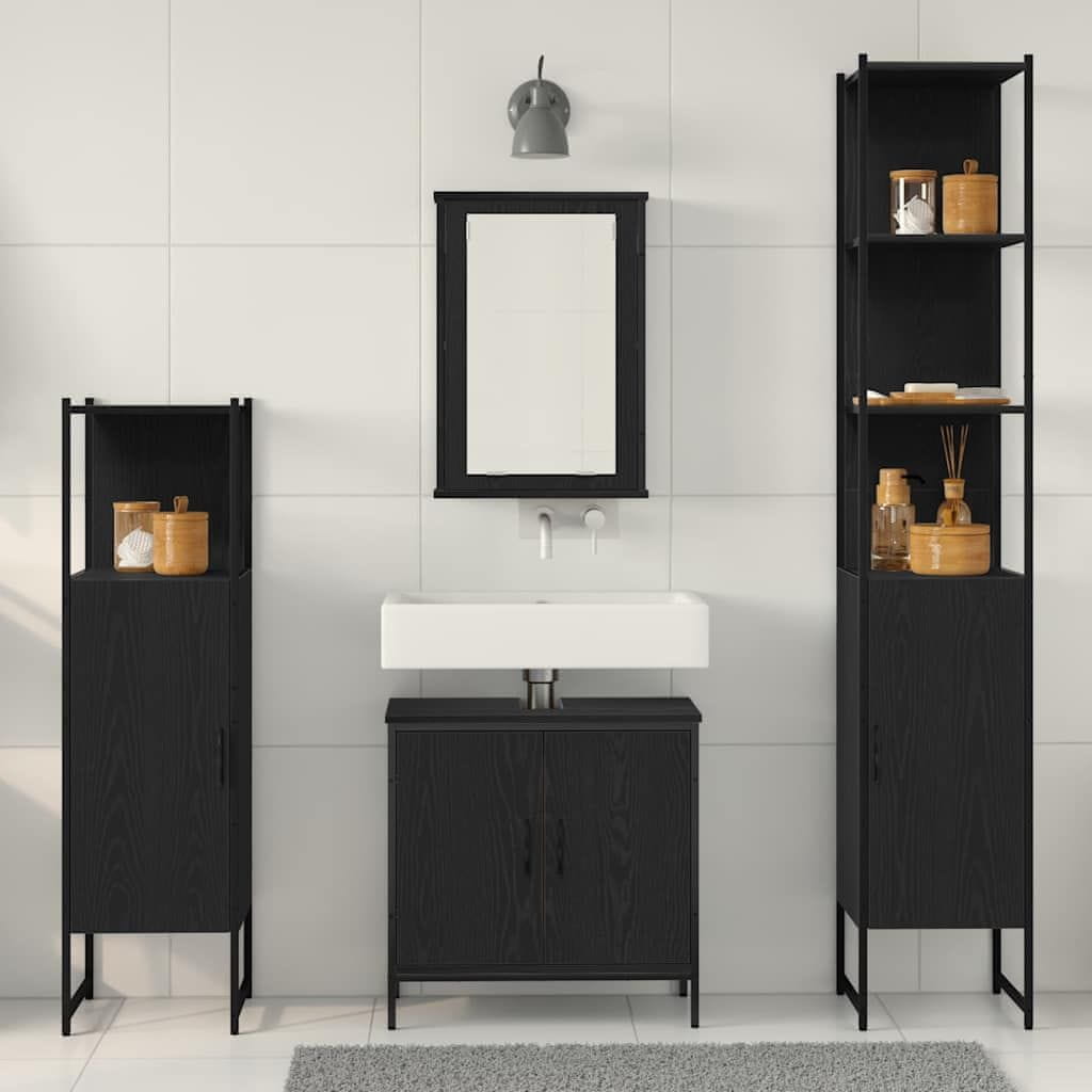 Vidaxl Komplet pohištva za kopalnico 4 pcs Črna Konstruiran les