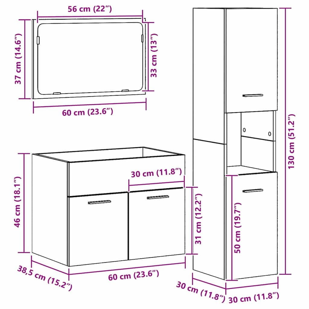 • Trden inženirski les: Ta set je narejen iz vrhunskega inženirskega lesa, ki je stabilen in odporen na vlago. Ta material zagotavlja dolgotrajno uporabnost, tudi v vlažnih prostorih, in dodaja naravno toplino vaši kopalnici.