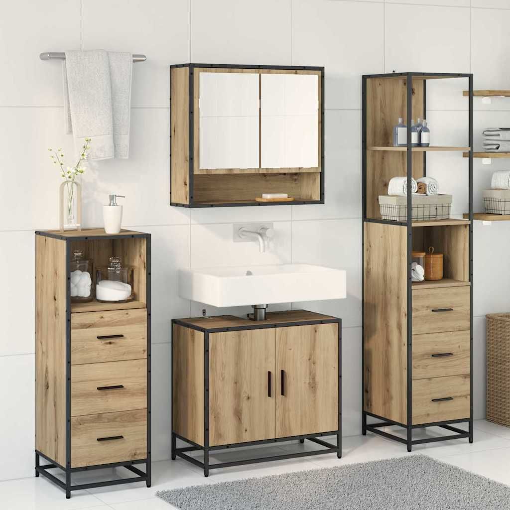 Vidaxl Komplet pohištva za kopalnico s predalom 4 pcs artisan hrast