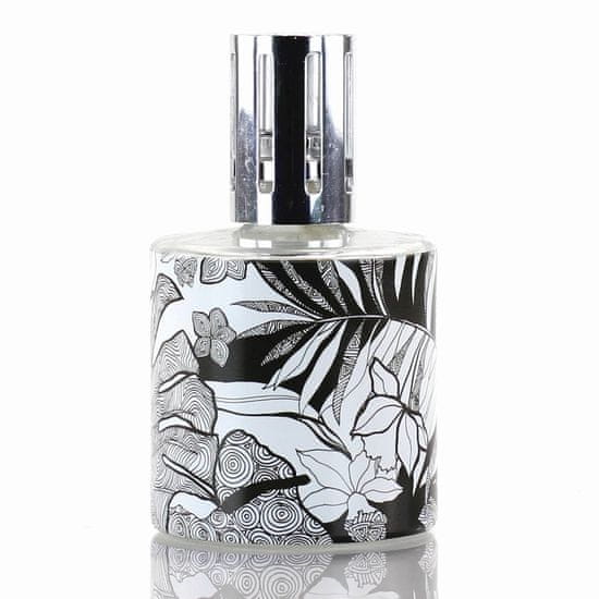 Katalitična svetilka v elegantni črno-beli kombinaciji, okrašena s cvetličnim motivom. Celoten opis