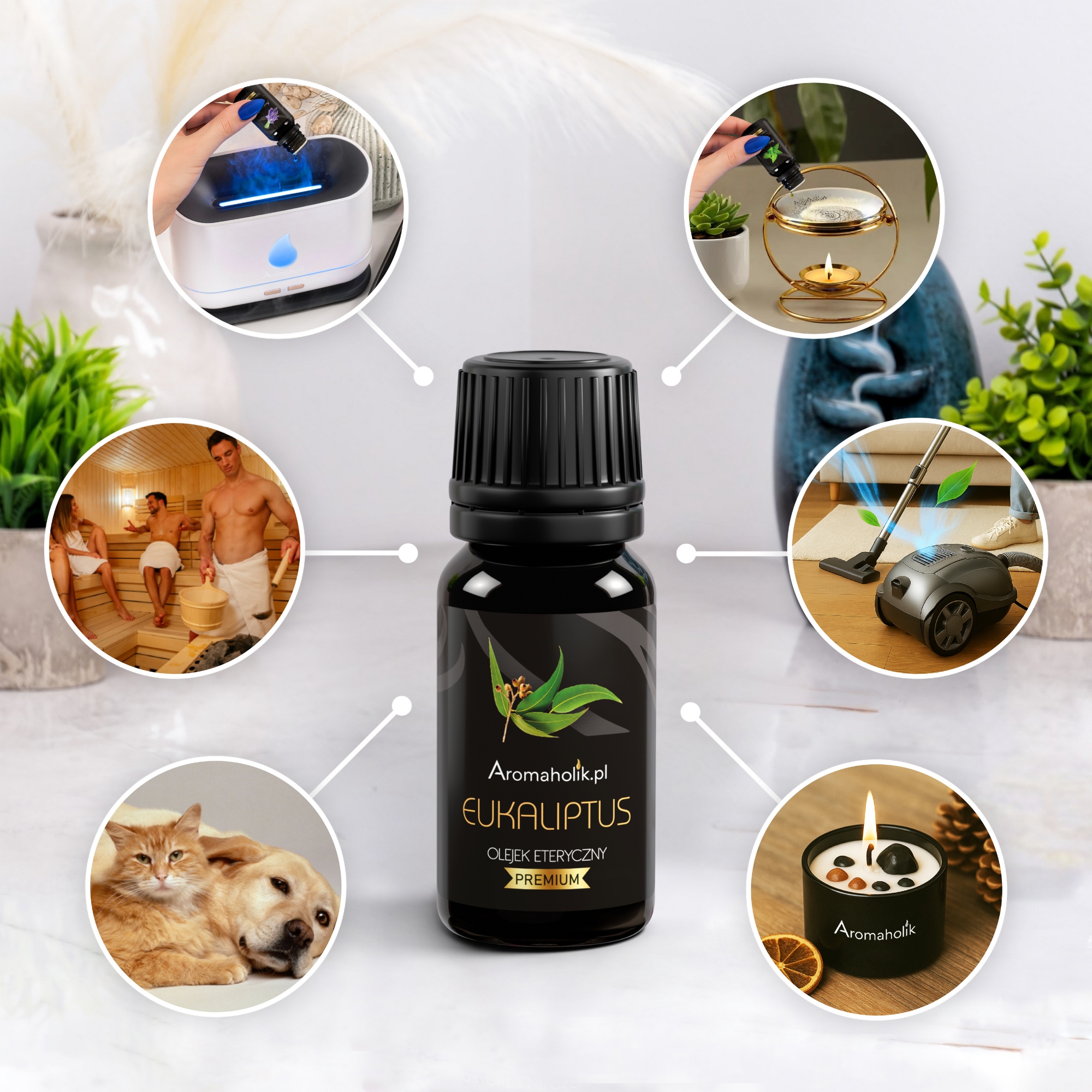 Komplet za zdravje Plus je bistvo naravne podpore za vaše telo in duha. Borovo olje osveži in pomaga v boju proti utrujenosti , hkrati pa povečuje koncentracijo. Poudarek evkaliptusa spodbuja živčni sistem , zbistri misli in doda energijo. Poprova meta z mentolom prinaša olajšanje od stresa in zagotavlja globoko osvežitev . Kafra zmanjšuje bolečine v živcih in izboljšuje kakovost spanca, zato je priporočljiva za ljudi, ki so preobremenjeni. Sivka prinaša pomiritev in sprostitev, olje pa ima tudi razkužilne in antibakterijske lastnosti, saj ubija obstoječe mikroorganizme in preprečuje njihovo razmnoževanje. Zahvaljujoč tem sestavinam je ta komplet odlično orodje pri doseganju popolnega zdravja in harmonije. Zakaj PREMIUM? Olja Aromaholik so pridobljena iz naravnih sestavin z destilacijo skrbno izbranih listov, iglic, storžev, cvetov in ostružkov iz Kitajske, Indije, Bolgarije in Madžarske – in ne sintetično, kot večina dišavnih olj. Imajo visoko koncentracijo