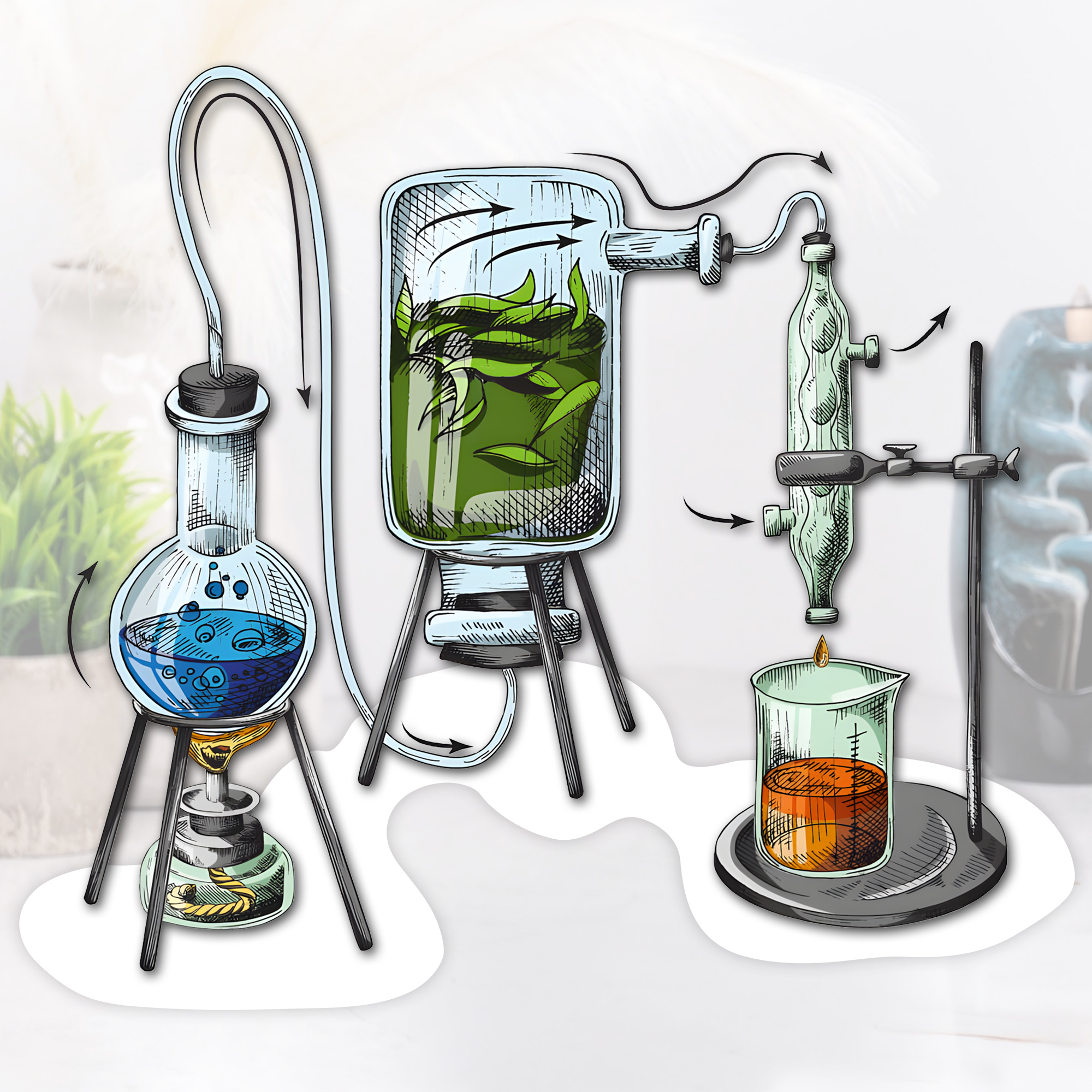 z destilacijo skrbno izbranih listov in vejic