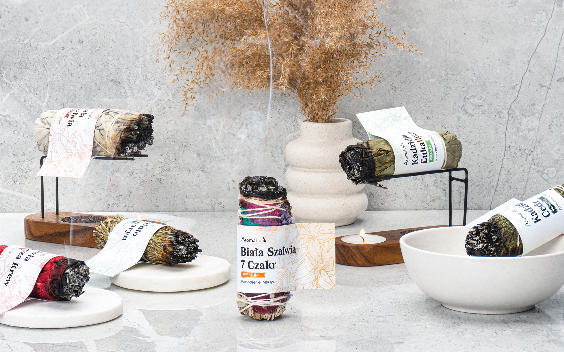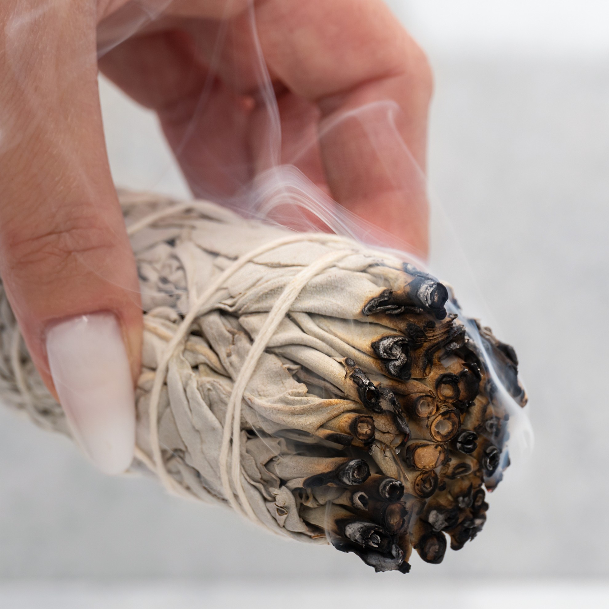 Kako kuriti? Prižgite šopek belega žajblja na enem koncu in počakajte trenutek, da se pojavi plamen. Nato plamen nežno ugasnite – beli žajbelj bo začel sproščati aromatičen dim. Postavite jih v kadilnico ali držalo in dišava bo začela polniti prostor.