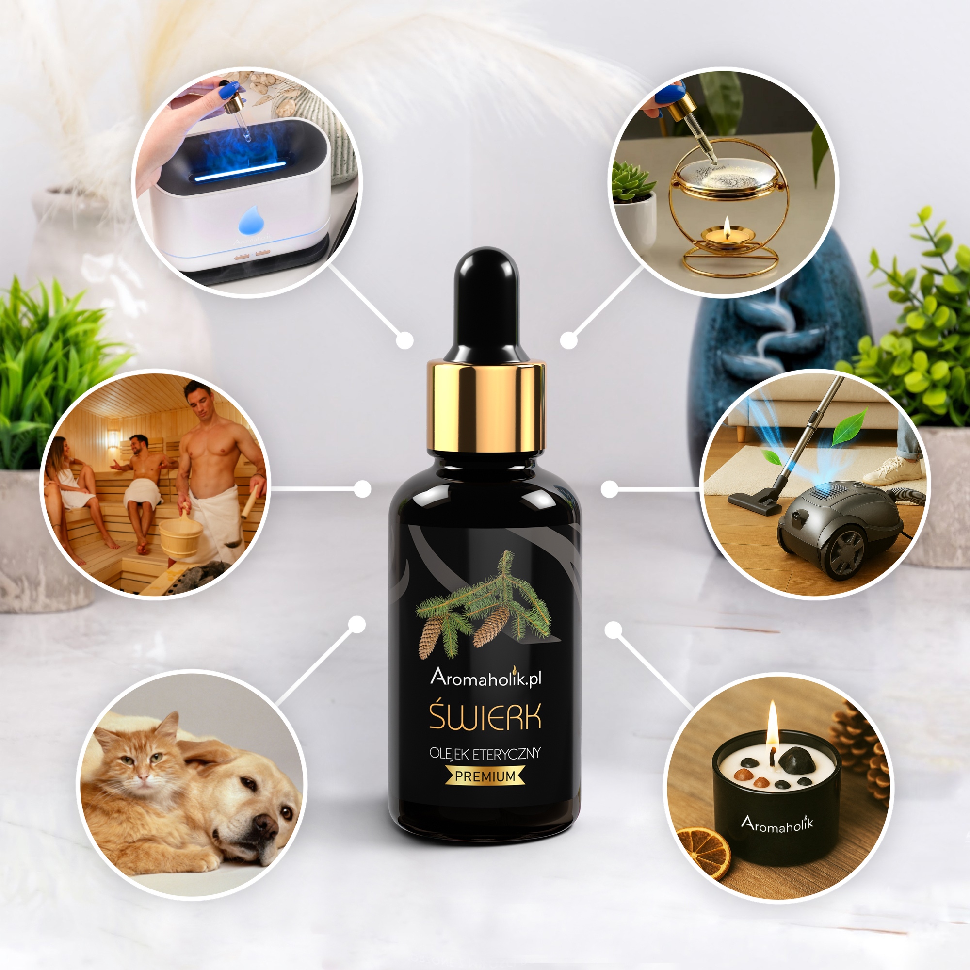 Olja Aromaholik so pridobljena iz naravnih sestavin* z destilacijo skrbno izbranih iglic in vejic črne smreke iz Kanade – in ne sintetično, kot večina dišavnih olj. Imajo visoko koncentracijo ( 50 % več kot standardno olje) in so popolnoma topni v vodi.