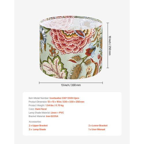 VEVOR Abajur boben 33x33x25 cm temno cvetlični vzorec