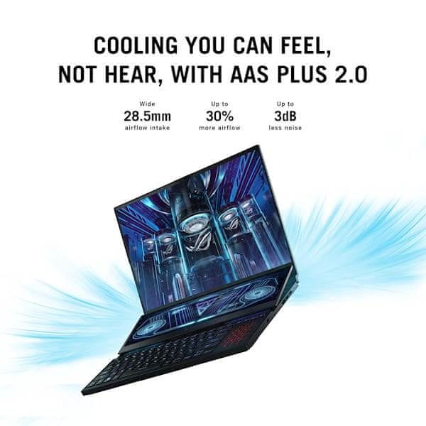 Prenosnik Asus ROG Zephyrus Duo 16 vam poleg zmogljivosti zagotavlja tudi vrhunsko funkcionalnost, saj združuje vse kar potrebujete za vrhunsko igranje iger ter druga opravila. Vgrajen ima napredni hladilni sistem AAS 2.0, ki dvigne sekundarni zaslon ter omogoča večji pretok zraka za hlajenje kar zagotovlja visoko učinkovitost pri intenzivnem igranju iger. Zajema tudi vse potrebnime priključke (HDMI, USB-C, RJ45) in podporo hitrega prenosa internetne povezave prek Wi-Fi in LAN (do 2.5 Gbps).