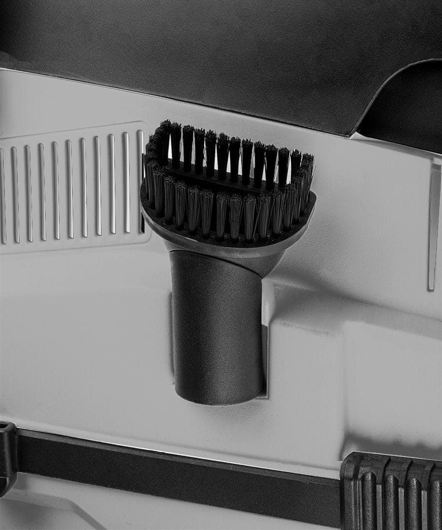 Industrijski sesalnik GRAPHITE 1600W 30L z vodnim filtrom 59G610 je robusten sesalnik za delavnice, opremljen z velikim 30-litrskim rezervoarjem in praktično vtičnico za priključitev električnega orodja (največ 2000 W). Sesalnik je primeren tako za mokro kot suho uporabo. Ima funkcijo pihanja in nastavljivo sesalno moč (do 18 kPa). Sesalnik je opremljen s kompletom praktičnih dodatkov – 3 m sesalno cevjo, cevjo, kolesi, 4 m kablom, vrečkami, adapterjem, filtrom za prah in šobami. Naprava je idealna za obnovitvena dela, v delavnici ali za vsakodnevno uporabo doma in okoli njega.