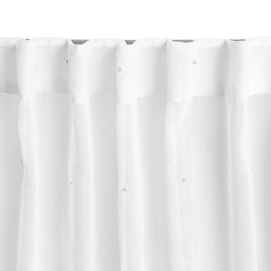 Zavesa SILA je odlična izbira za tiste, ki cenijo subtilne in elegantne okenske dekoracije. Prozorna tkanina lepo razprši svetlobo in ustvarja prijetno vzdušje v prostoru. Dekorativni biseri, nameščeni na materialu, dodajo edinstven čar in notranjosti dajo eleganten občutek.