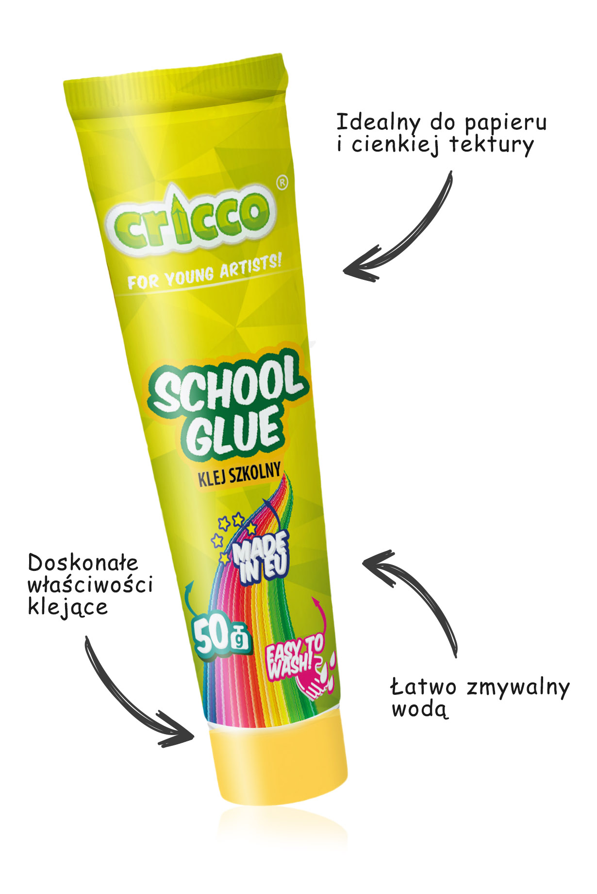 Cricco lepilo v tubi je lepilo s priročno pastozno konsistenco. Primerno je predvsem za lepljenje papirja in tankega kartona. Je enostavno pralno in ne pušča madežev. Popolno za otroke doma in v šoli.