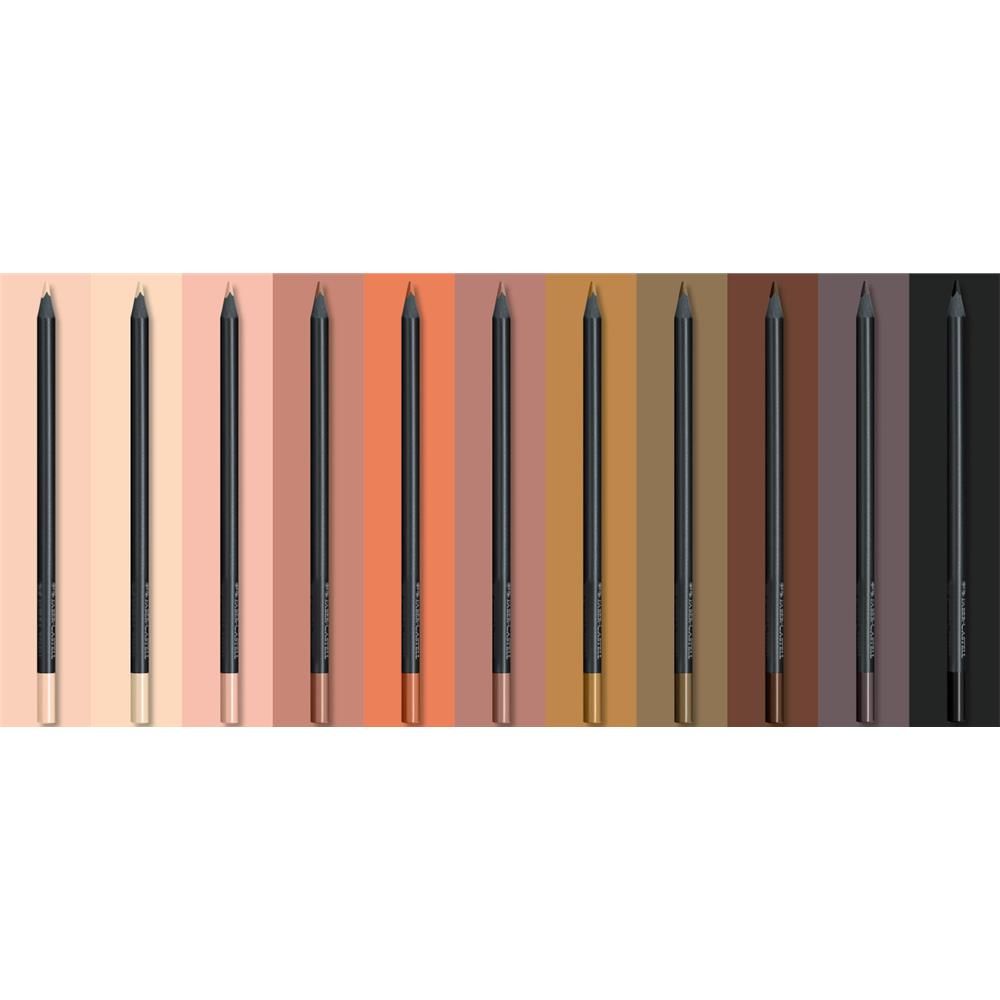 Faber-Castell 116414FC Trikotni svinčniki Black Edition 12 barv v kožnih tonih Celoten opis