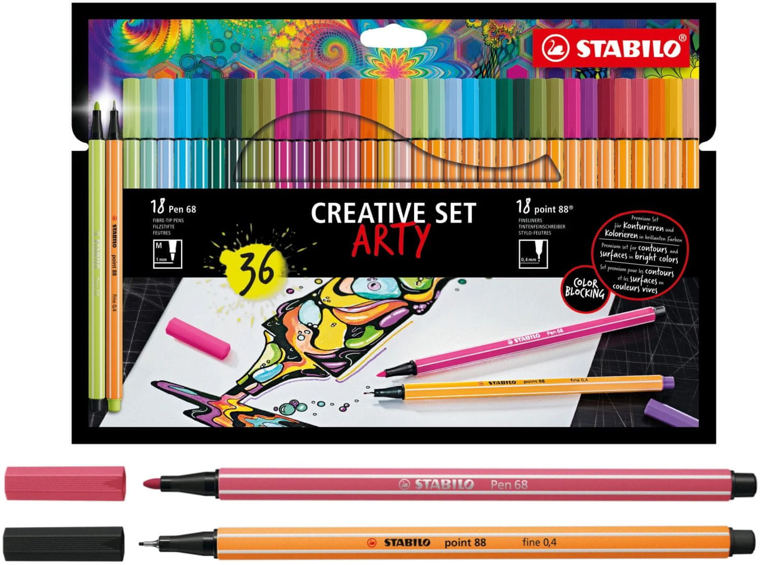 Kreativni set Stabilo Point88 + Pen68 Arty 36 kosov. Kreativni set Fineliner 8868/36–1–20–6 Celoten opis