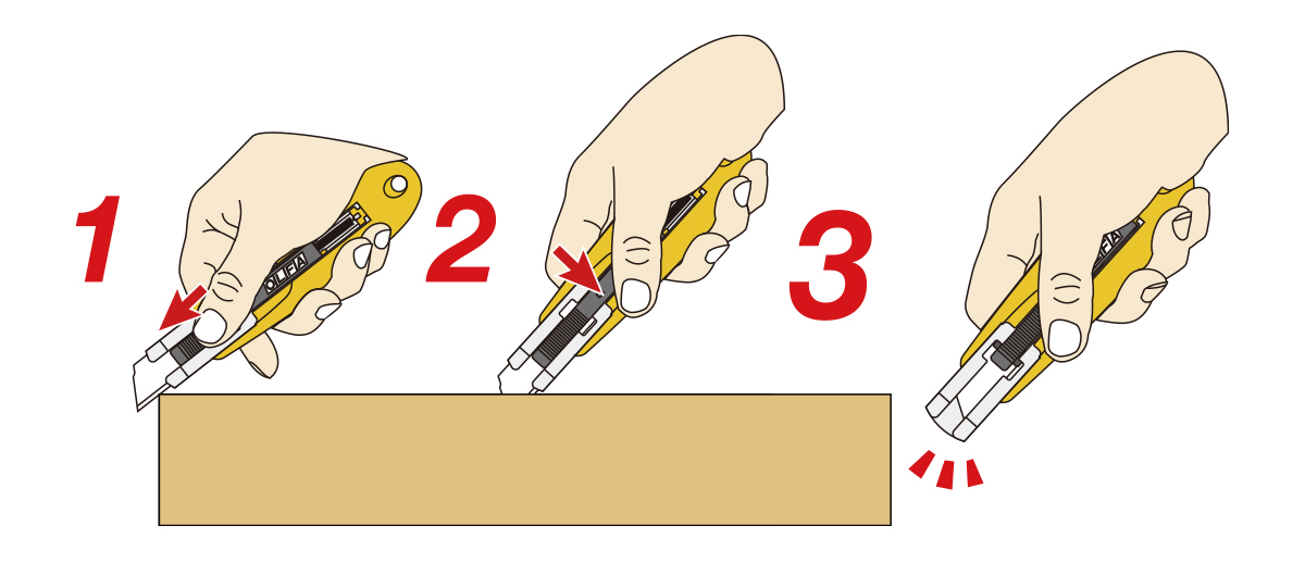 Rezila OLFA so izjemno ostra. Bodite še posebej previdni pri rezanju in menjavi rezila. Tudi rabljena rezila so lahko nevarna – preden jih zavržete, jih zaščitite, na primer z uporabo posod, v katerih so dostavljena nova rezila, ali uporabite posebne posode OLFA DC-2 in DC-4. Nože in rezila OLFA hranite izven dosega otrok!