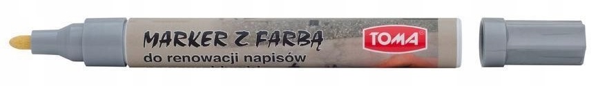 Visokokakovosten barvni marker znamke Toma. Primeren za različne površine, kot so kovina, steklo, plastika, guma in papir. Je neizbrisen, odporen na vremenske vplive ter zagotavlja odlično pokritost in vzdržljivost. Omogoča natančno prekrivanje napisov. Primeren za popravljanje črk, vklesanih v kamen (na nagrobnikih).