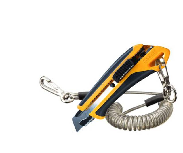 Ta novi segmentni nož z 18 mm rezilom ima na zadnji strani ročaja veliko luknjo za pritrditev varnostne vrvice – ki preprečuje, da bi orodje padlo ali se izgubilo. Združljiv je z različnimi kovinskimi ročaji, kot je na primer vponka. Udoben dvokomponentni brizgani ročaj je izdelan iz nedrsečega polipropilena, ojačanega z elastomerom.