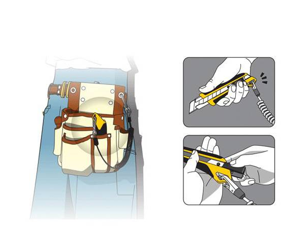 Pritrditev varnostne vrvice nedvomno vpliva na varnost pri delu na višini. Priložena vrvica ne ovira dela ali menjave rezila. Luknja omogoča priročno obešanje noža na steno ali na ploščo za orodje. Ta nož je idealen za delo na območjih, ki zahtevajo posebno varnost!