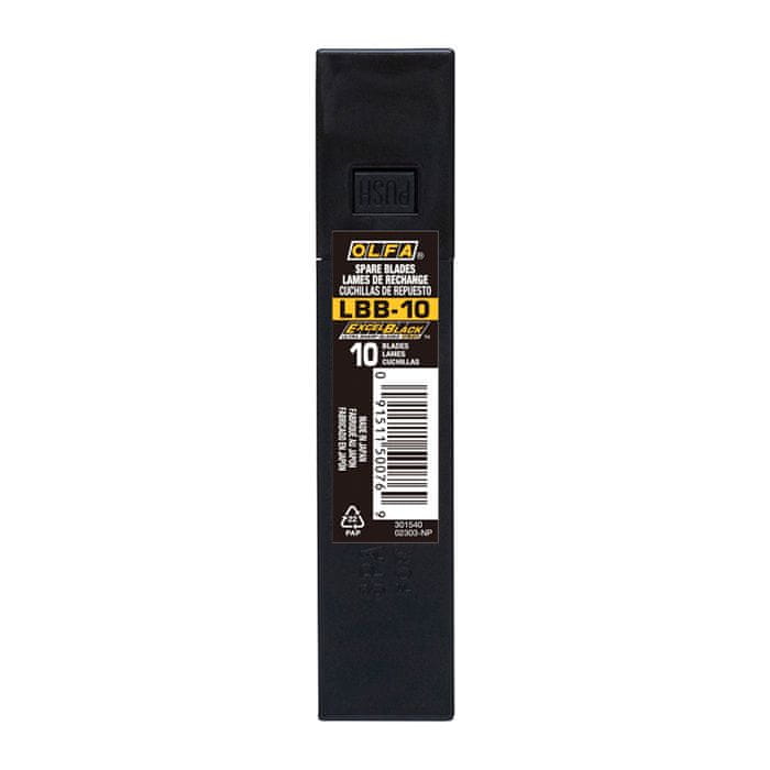 V primerjavi s standardnimi rezili LB imajo rezila črna LBB zmanjšan kot ostrenja in povečano širino ostrenja. Zaradi teh sprememb je bila začetna rezalna sposobnost rezil ExcelBlack za 25 % višja od standardnih rezil (srebrna) OLFA in skoraj dvakrat višja v primerjavi z rezili drugih proizvajalcev. Zaradi tega so rezila LBB idealna za profesionalce in vse, ki opravljajo dela, ki zahtevajo popoln, gladek rezalni rob. Idealno za rezanje mehkih materialov, kot so karton, guma, stiropor, pluta, usnje, papir itd.