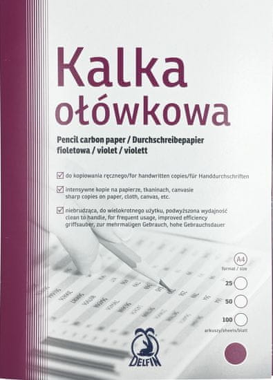 DELFIN pavs papir premazan z vijolično pisalno maso. Uporablja se za izdelavo odtisov rok.
