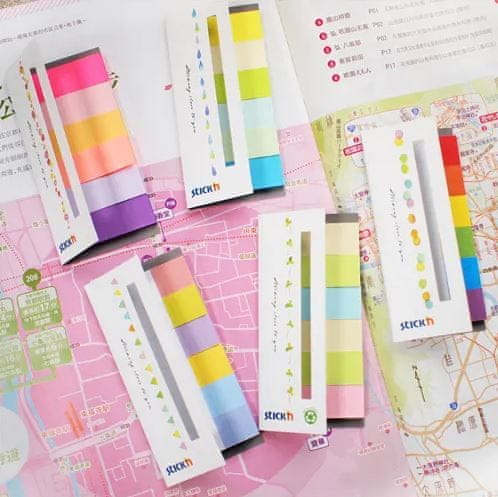 Posamezni papirnati zaznamki. 45×15 mm, 6 barv. Neon. Eko, 180 listov. Stickn 21597 Celoten opis
