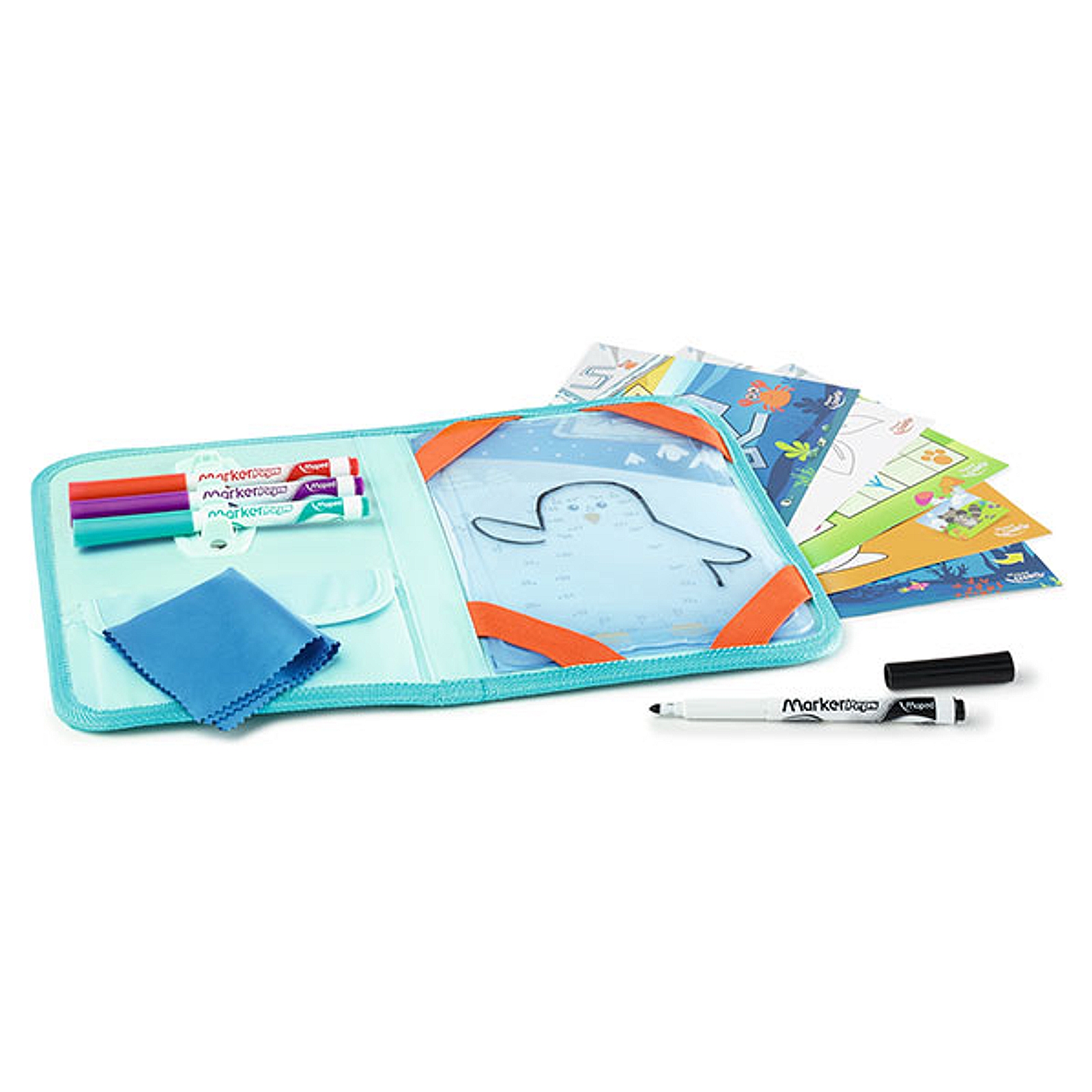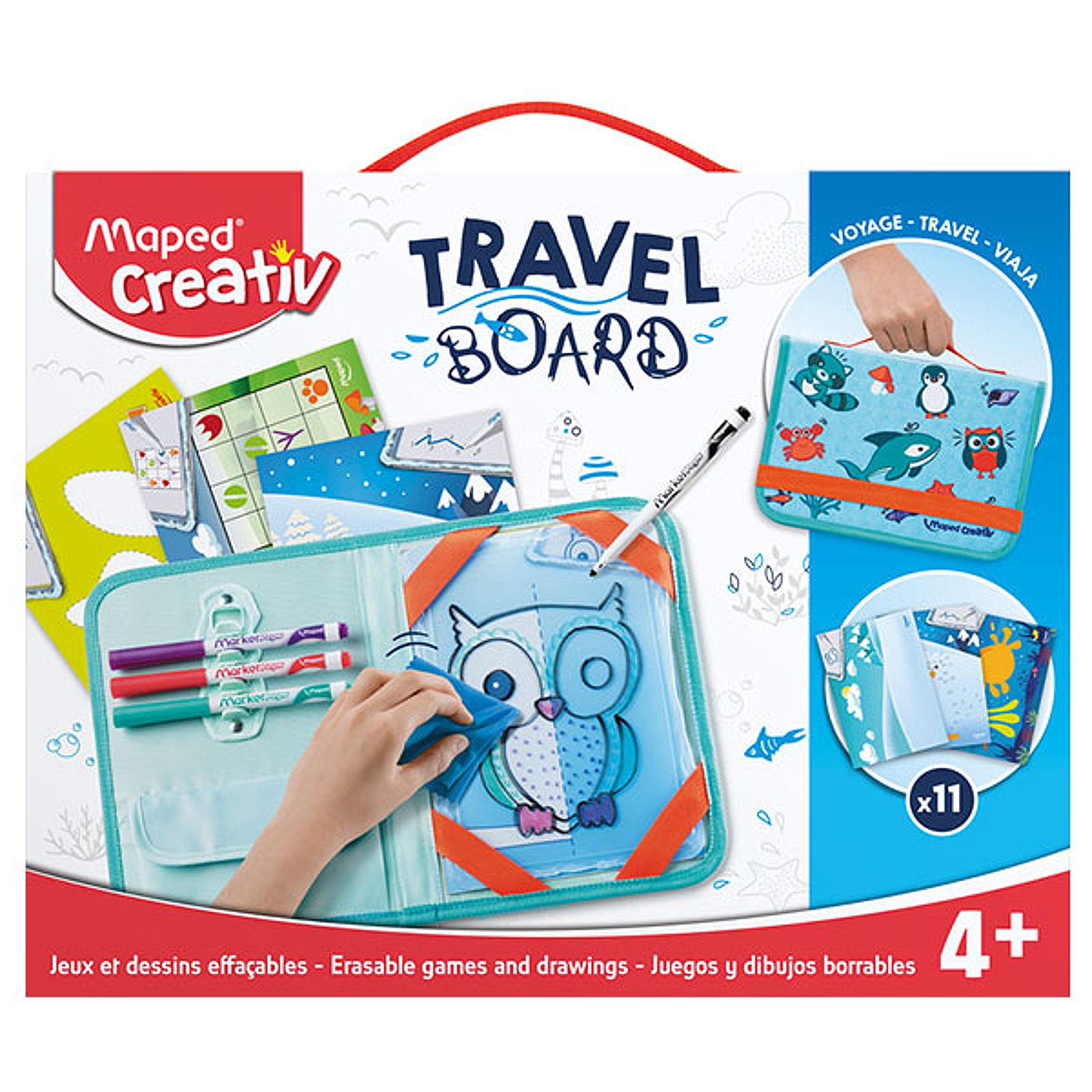 Rišite in se zabavajte, kamor koli greste! Prozorna tabla za suho brisanje Maped Creativ je odlična za ustvarjanje risb na podlagi priloženih predlog. Šablono postavite pod tablo in sliko obrisajte s priloženimi flomastri za suho brisanje. Izkušenejši umetniki lahko ustvarijo svoje kompozicije. Popolno za igro doma ali v vrtcu. Pakirano v praktičnem etuiju, ki poleg table shrani vse pripomočke. Tako jo lahko vzamete s seboj kamor koli!