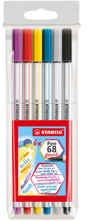 Stabilo Brush Pen68 Fineliner 6 barv 568/06–11 Celoten opis