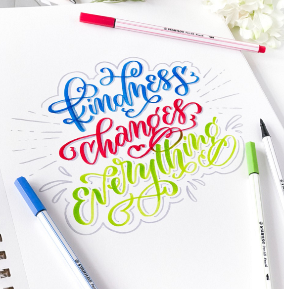 S Stabilo Pen 68 Brush lahko začnete svojo pustolovščino s priljubljenim ročnim pisanjem tudi brez kakršne koli priprave. Potrebujete le en izdelek, da ustvarite različne okrasne napise. Vse je odvisno od pritiska, ki ga uporabite pri pisanju. Rahel pritisk ustvari tanko črto, močan pritisk pa široko črto.