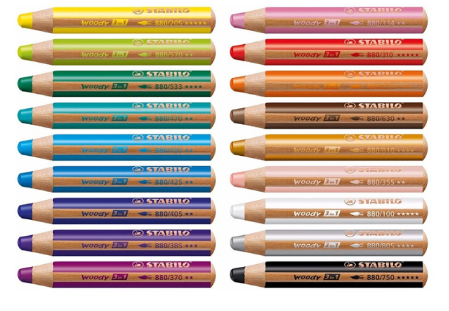 STABILO woody komplet barvic 3 v 1 – barvica, akvarelna barvica in voščena barvica v enem!
