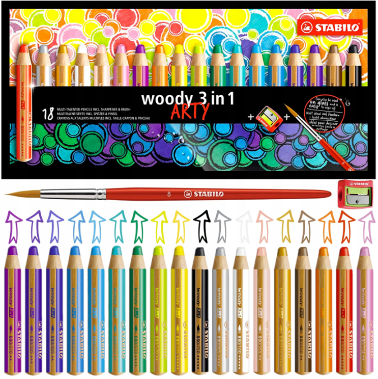 Edinstvene Stabilo Woody Arty barvice, do 18 barv v kompletu s šilčkom.