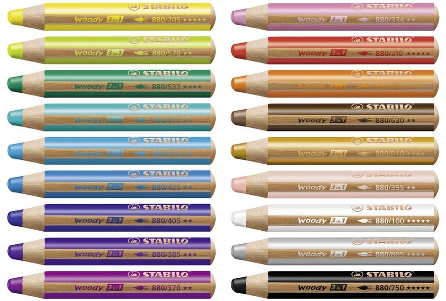Stabilo barvice so edinstvena 3-v-1 rešitev za male umetnike: barvica, akvarelna barvica in voščena barvica.