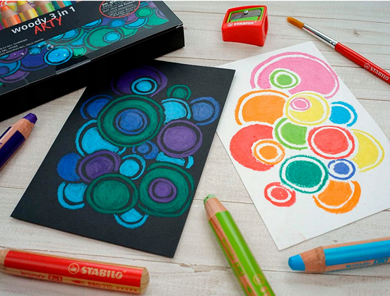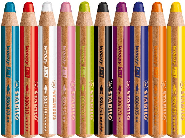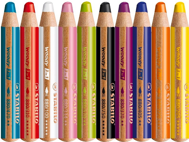 Stabilo barvice so edinstvena 3-v-1 rešitev za male umetnike: barvica, akvarelna barvica in voščena barvica. Velik premer barvic (1,3 cm) jih olajša držati.