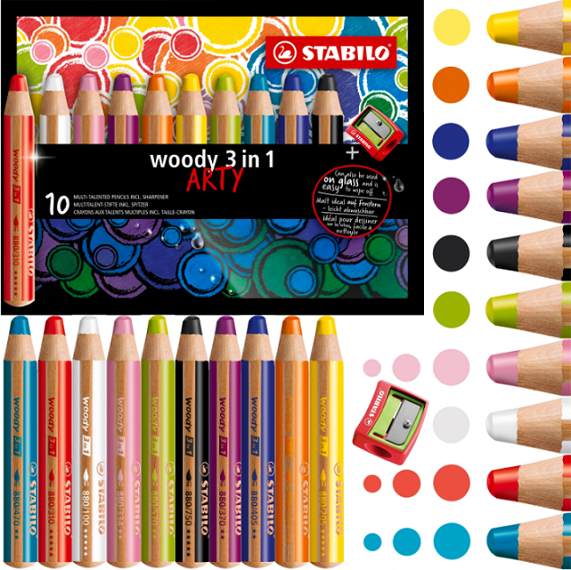 Edinstvene Stabilo Woody umetniške barvice 10 barv v kompletu s šilčkom.