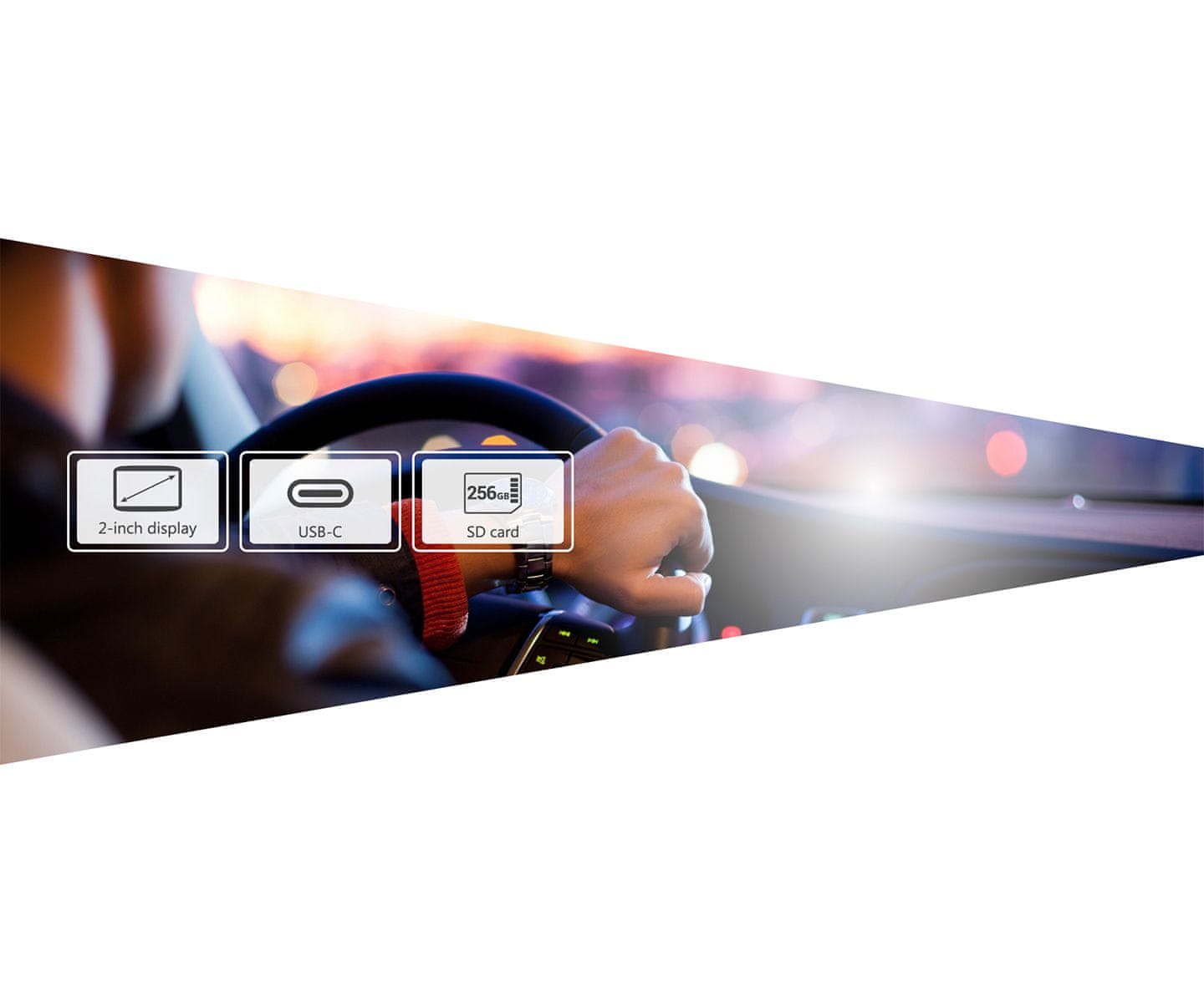 NAVITEL R260 NV je opremljen z IPS zaslonom s širokimi koti gledanja, zaradi česar je zaslon popolnoma berljiv s katerega koli zornega kota v avtomobilu. Naprava se napaja iz avtomobilskega omrežja prek priključka USB-C in podpira kartice microSD razreda U3 in višje s kapaciteto do 256 GB.