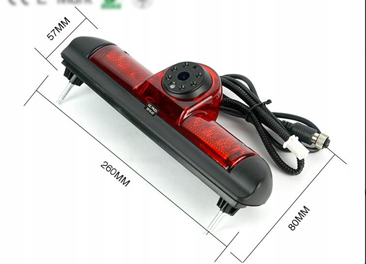 Namestitev je izjemno preprosta in hitra – preprosto odstranite tovarniško srednjo zavorno luč in na njeno mesto priključite modul kamere. Napajalne žice kamere je treba priključiti na originalni priključek za napajanje zavorne luči, video kabel RCA pa je treba napeljati do izbranega monitorja. Spremembe karoserije vozila niso potrebne. Komplet
