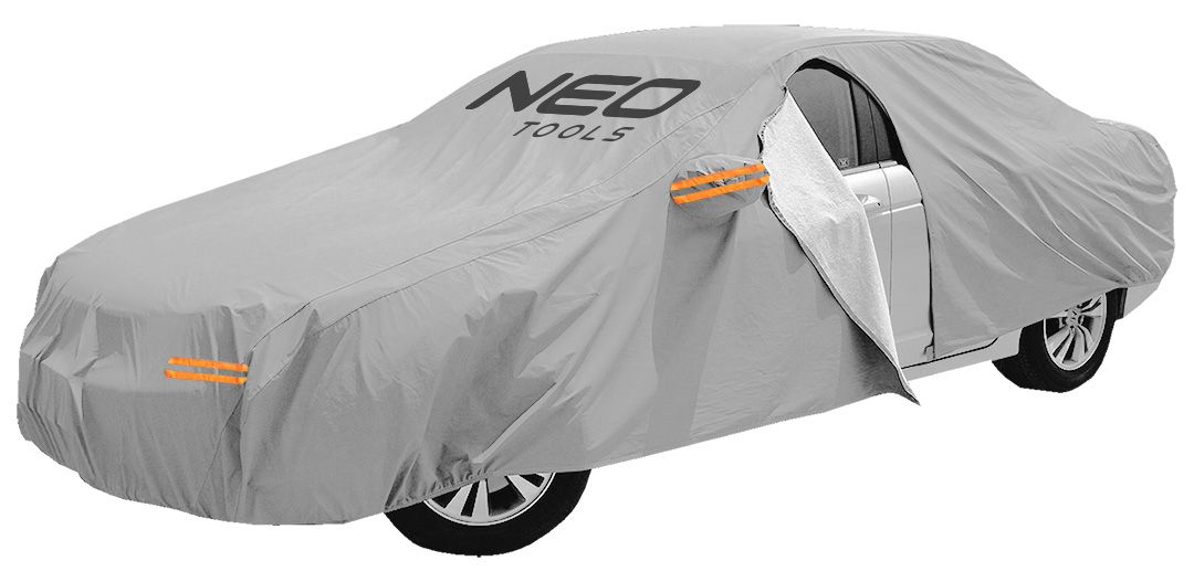Večplastna prevleka za avto NEO TOOLS (2 sloja, vodoodporna) XL, 10–475 je vodoodporna prevleka dimenzij 5,3 × 1,8 × 1,2 m. Izdelana je iz neprepustnega materiala PEVA z dodatkom bombaža. Ima praktično zadrgo na spodnji strani, ki preprečuje zvijanje, in odpiranje vrat za hiter dostop do vozila. Prevleka je zasnovana za zunanjo uporabo. Ščiti avto pred slabimi vremenskimi razmerami. Ima vgrajene odsevnike za boljšo vidljivost po temi. Priložena je torba za enostavno shranjevanje. NEO TOOLS priporočamo vsem navdušencem nad motorji.