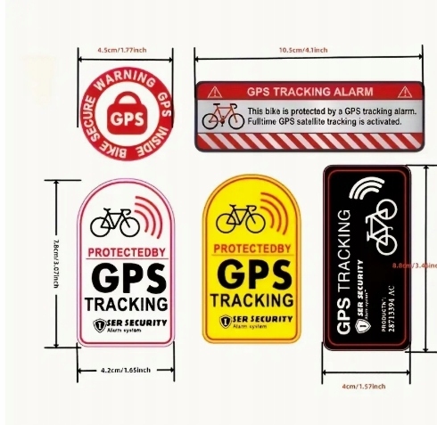 Komplet 5 GPS nalepk za zaščito pred krajo koles, skuterjev in motornih koles Celoten opis