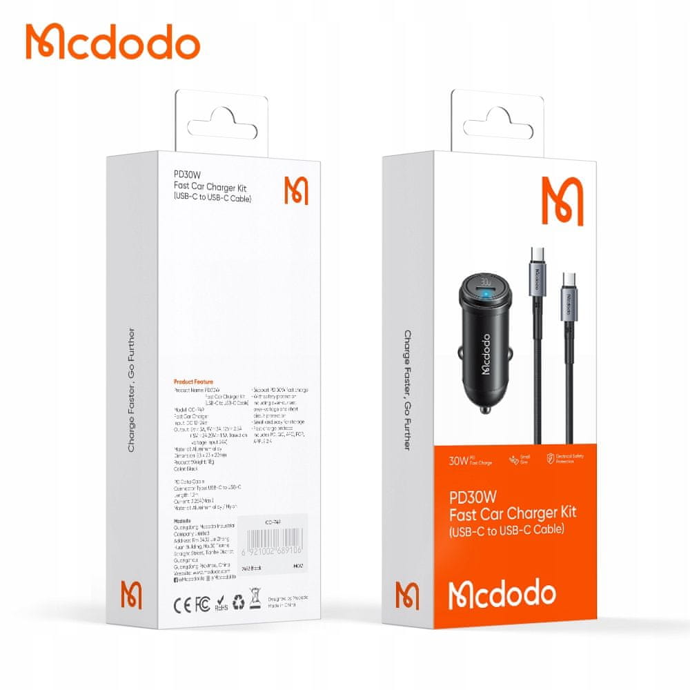 - 1 x avtomobilski polnilec Mcdodo Bullet 30 W